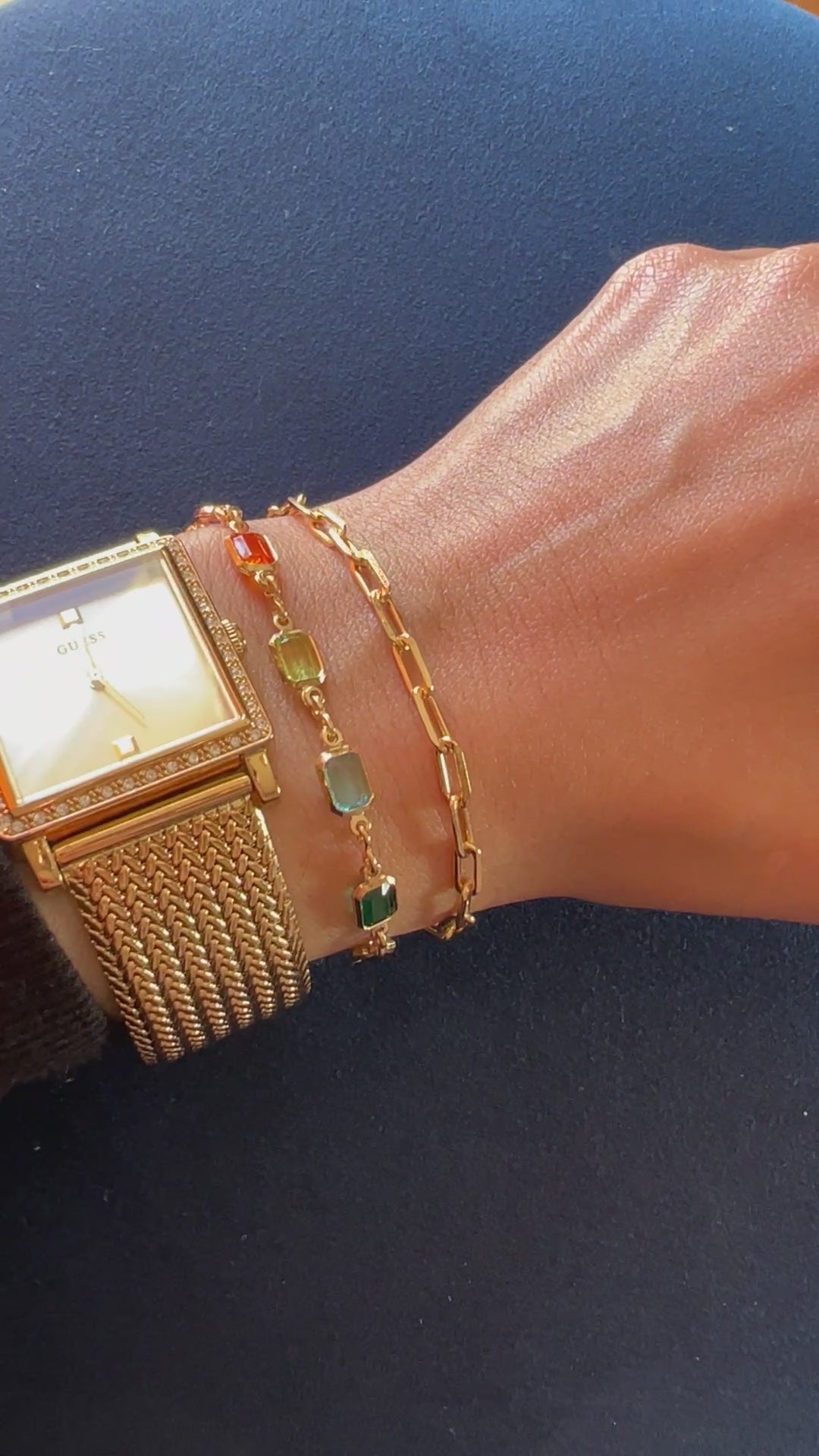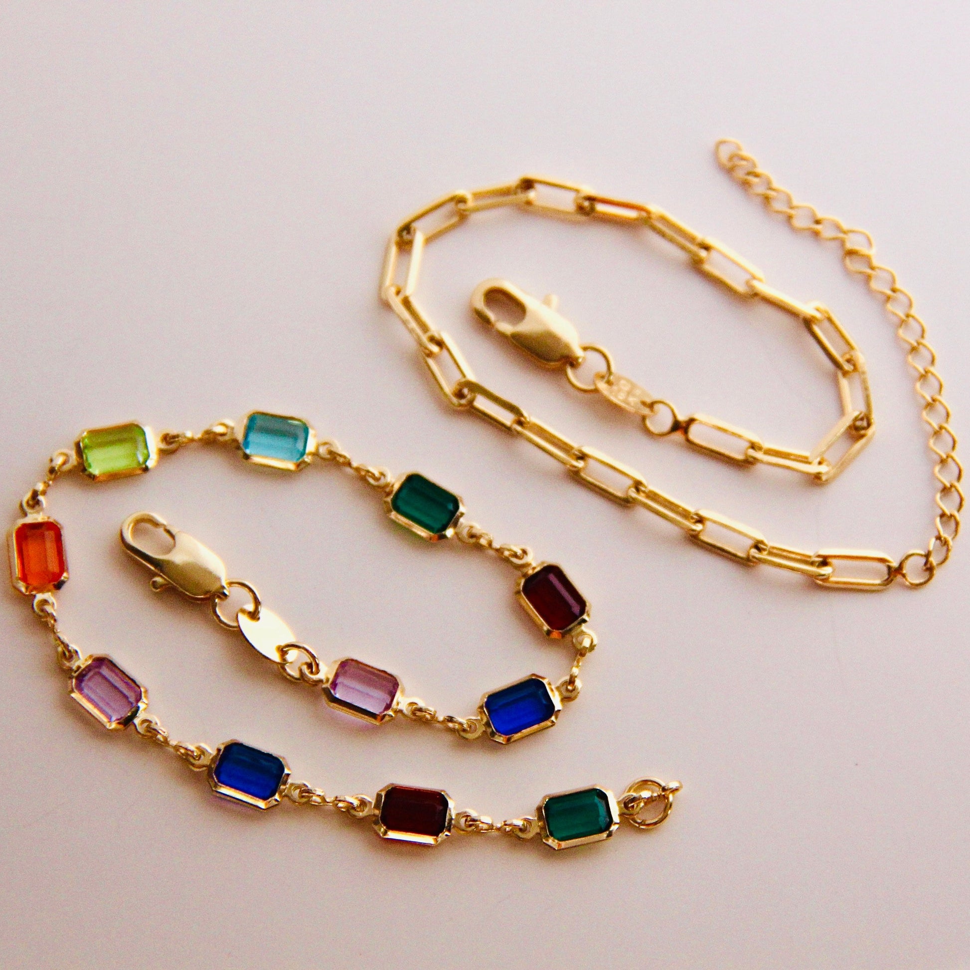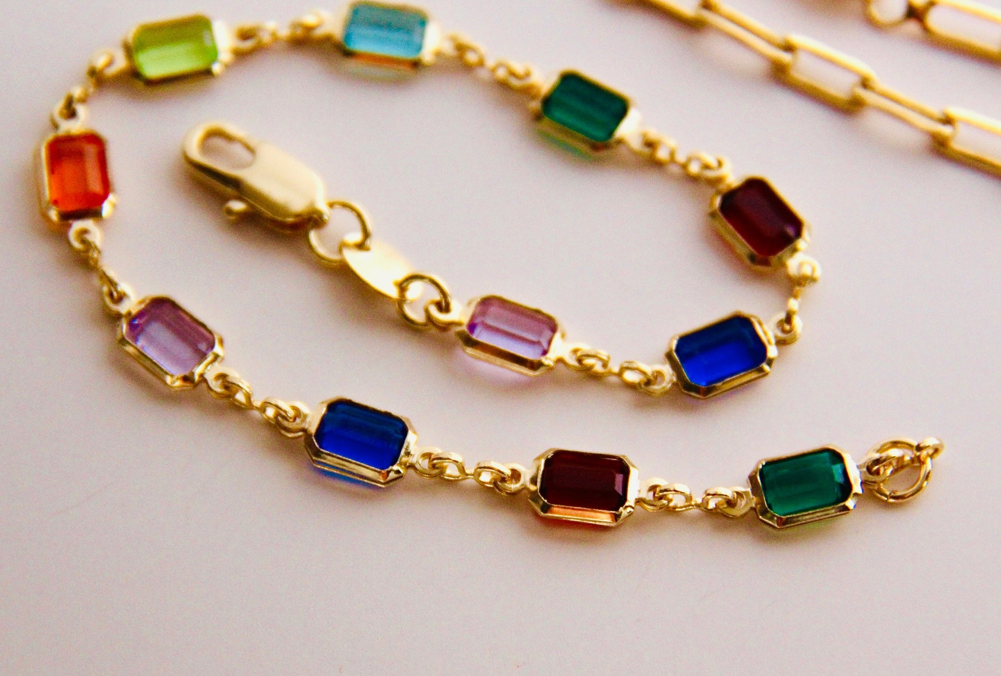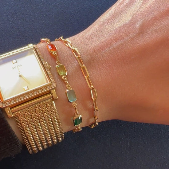 Mulicolor Crystal and Paper Clip Bracelet in Gold Filled