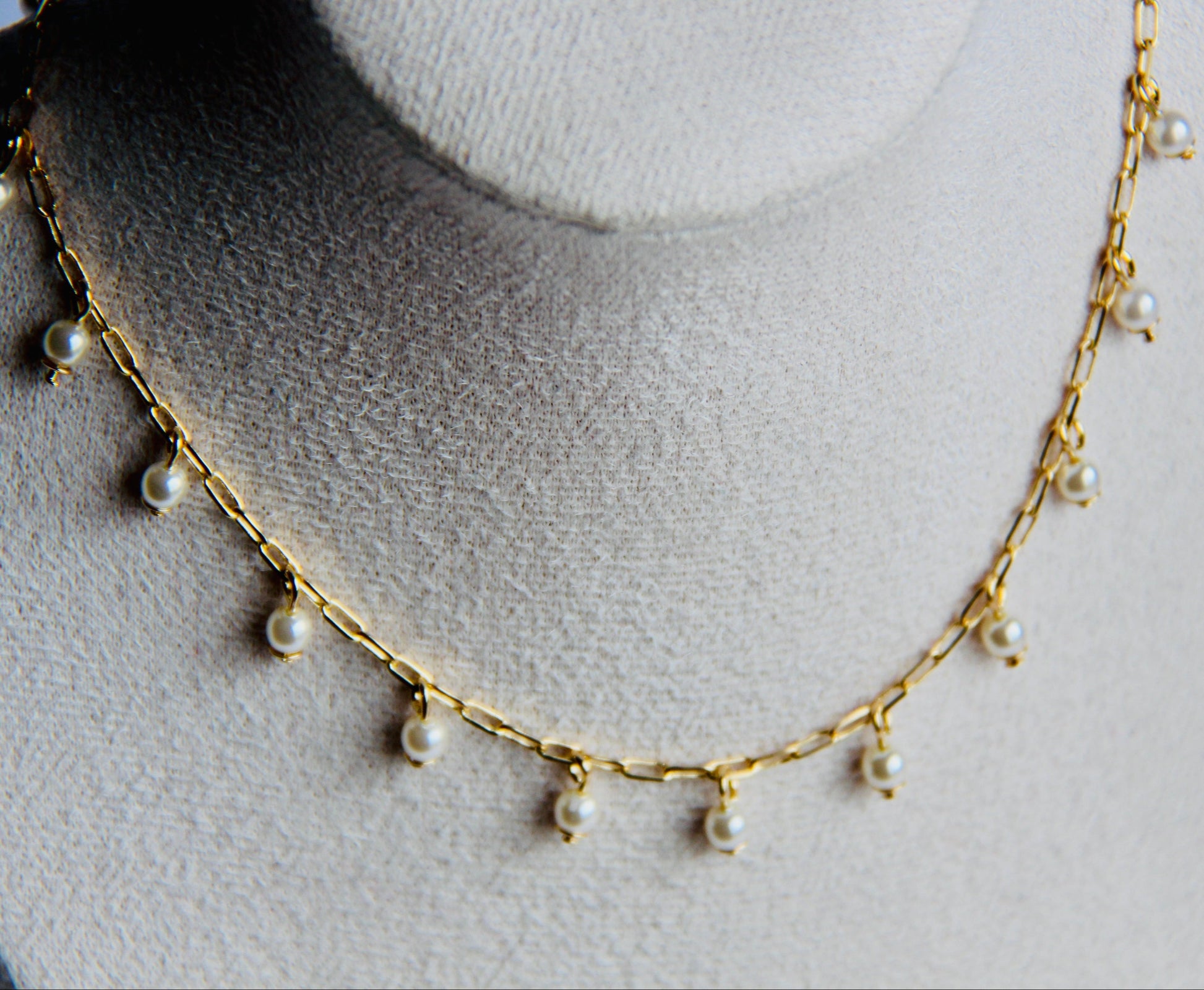 18K gold-filled Pearl Drop Paper Clip Necklace with extension. 14 inches with 2 inch extention.